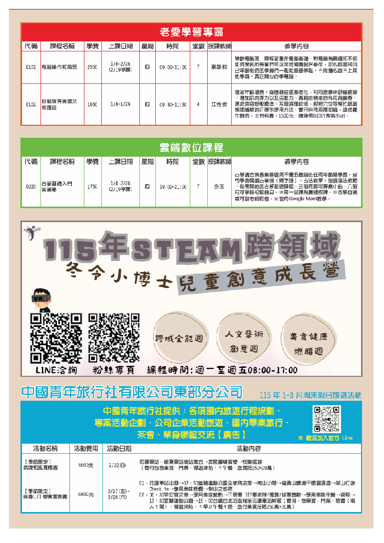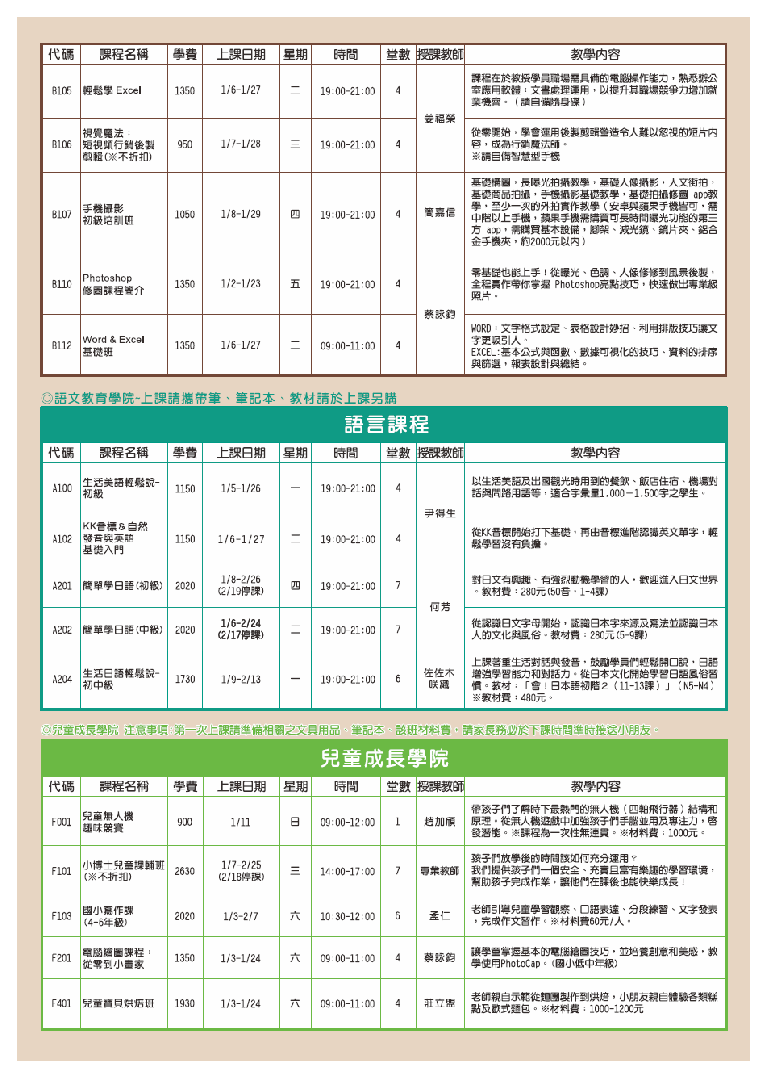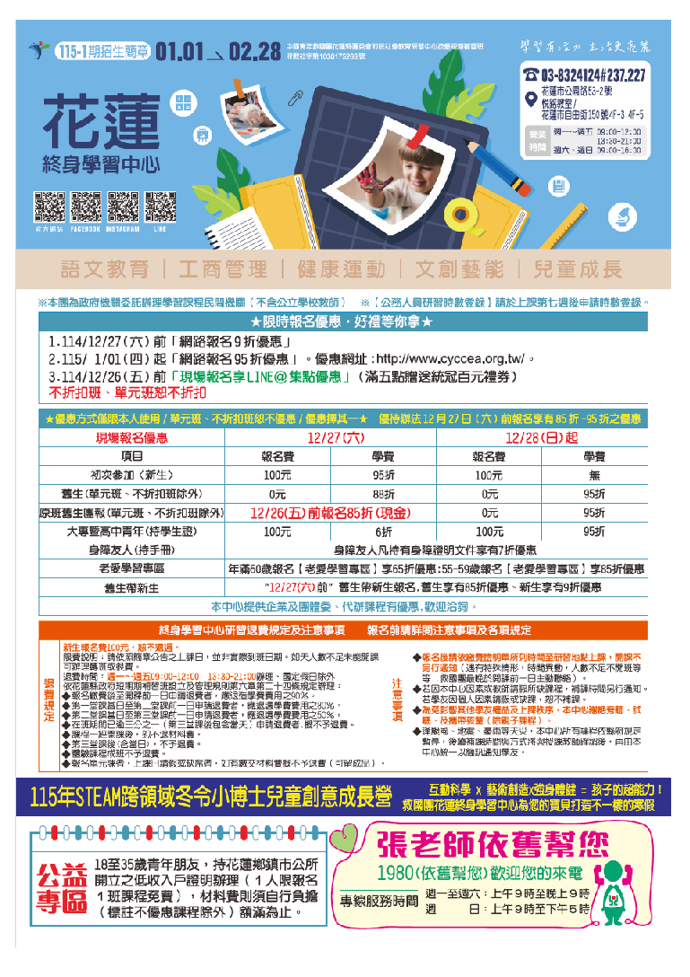早鸟优惠114年12月27日(六)前 报名(单元班、证照班、不折扣班别除外)