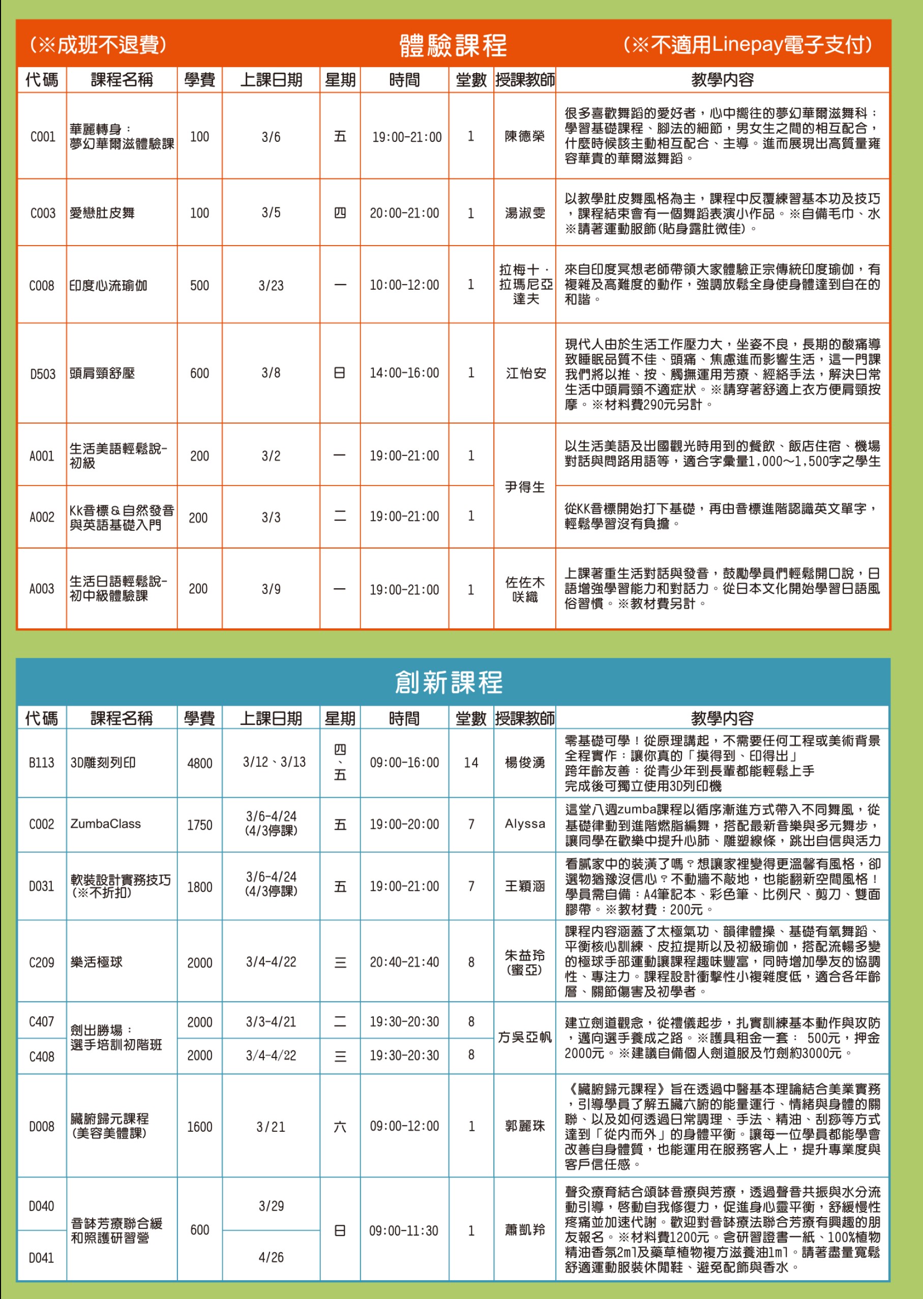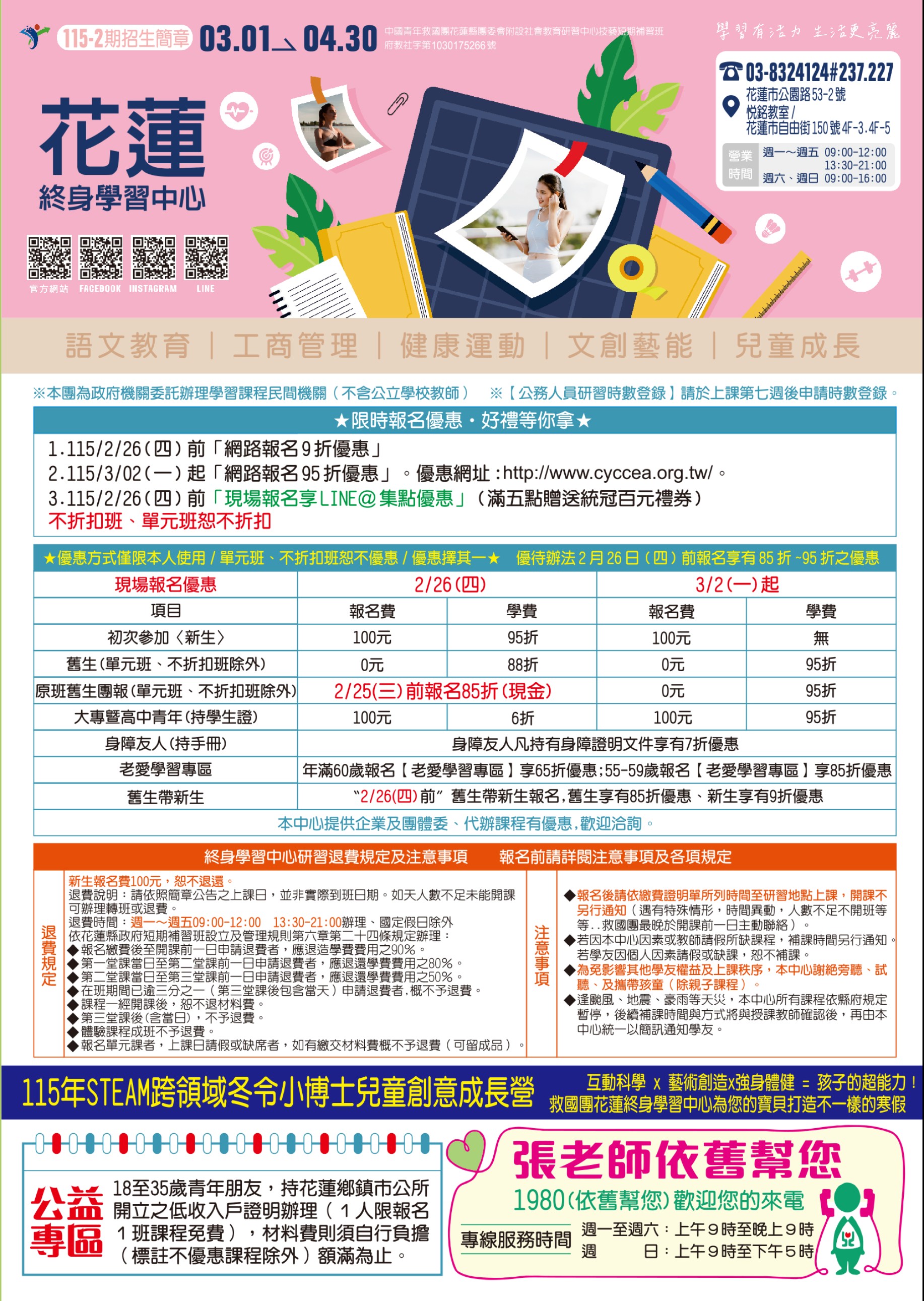 早鳥優惠115年2月26日(四)前 報名(單元班、不優惠班別除外) ⠀