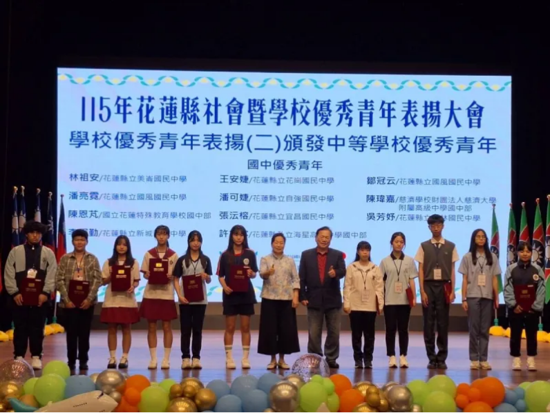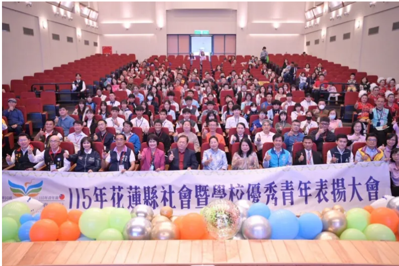 由花蓮縣政府、吉安鄉公所、立法委員傅崐萁服務處、青年節籌備委員會、花蓮第二信用合作社、花蓮縣救國團之友聯誼會及救國團總團部共同指導,花蓮縣救國團及幼獅青年服務協會共同主辦的「115年花蓮縣社會暨學校優秀青年表揚大會」,於今(28)日在花蓮縣吉安鄉客家文化館隆重舉行。今年以「夢想成形 青春前行」為主題,表彰來自社會與學校的優秀青年,肯定他們在品德、學業、創新、服務等領域的卓越表現,為社會注入青春正能量。