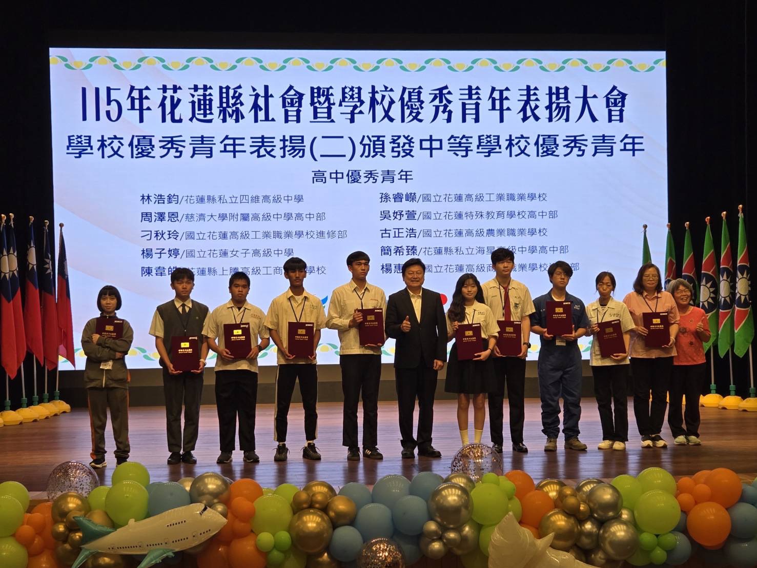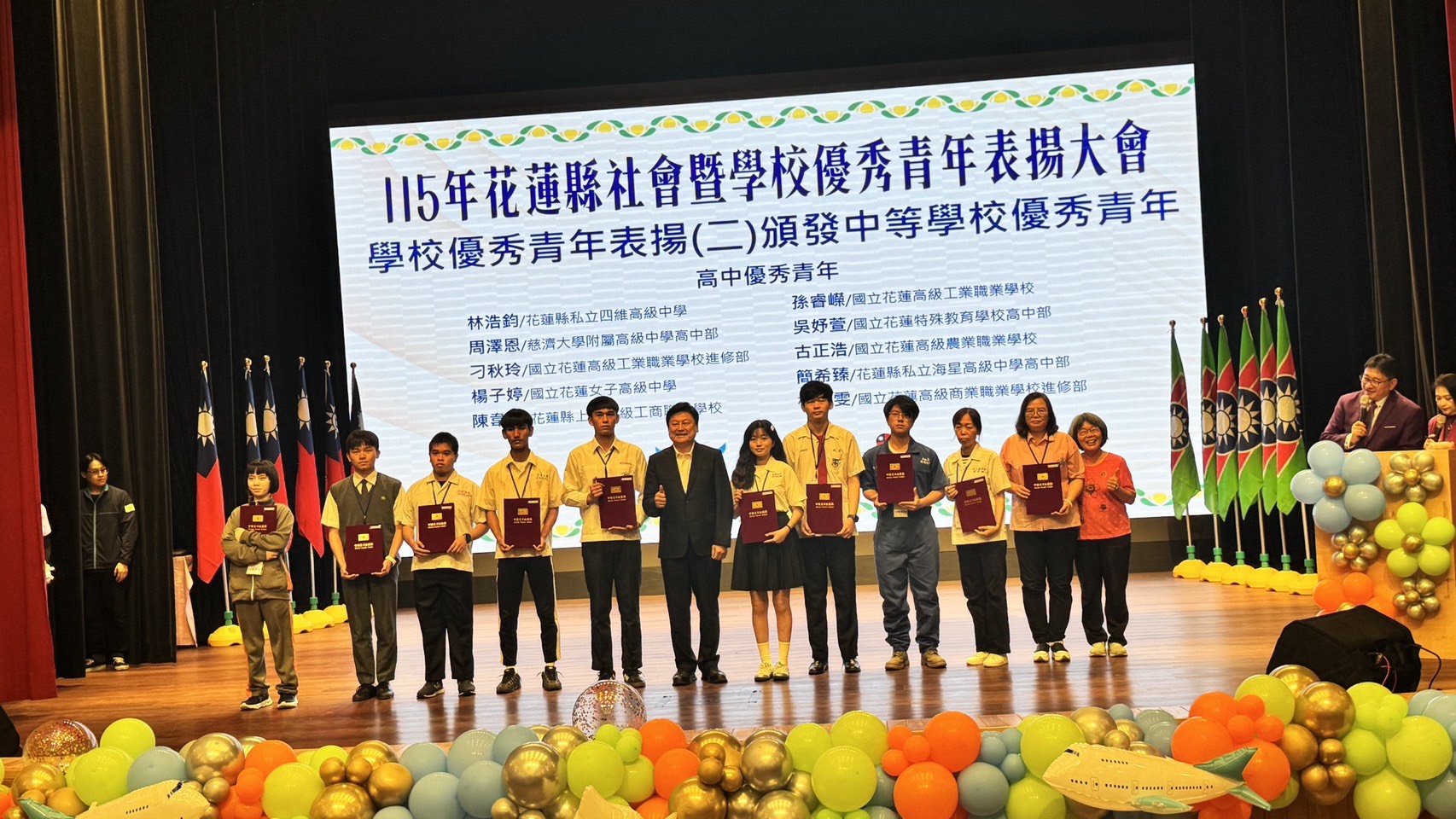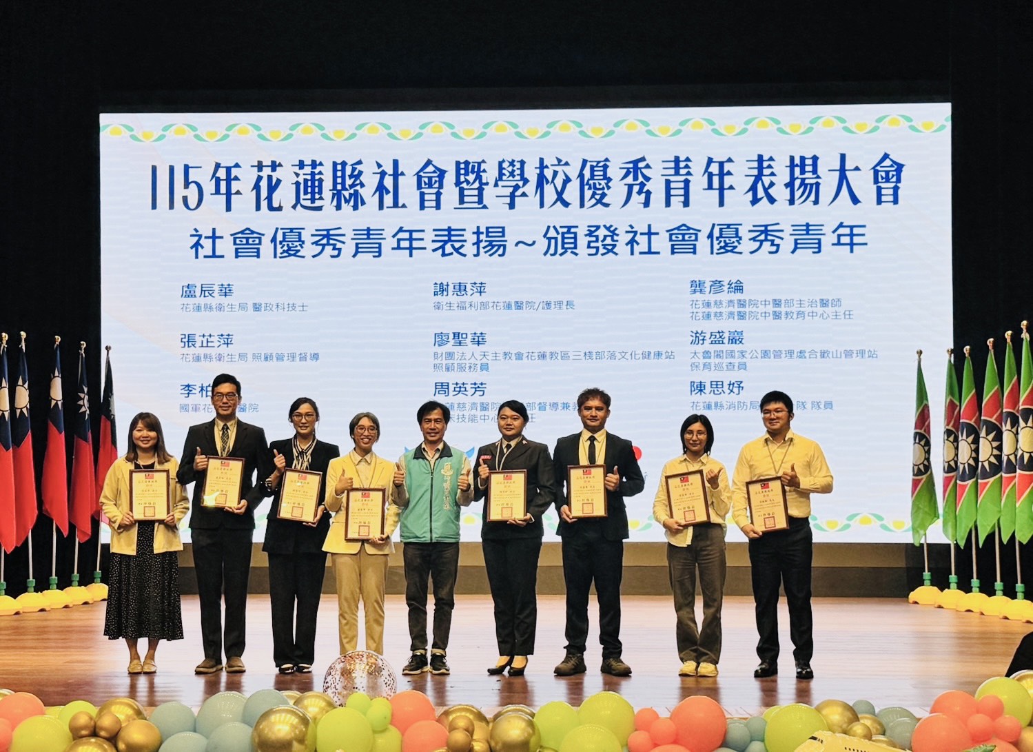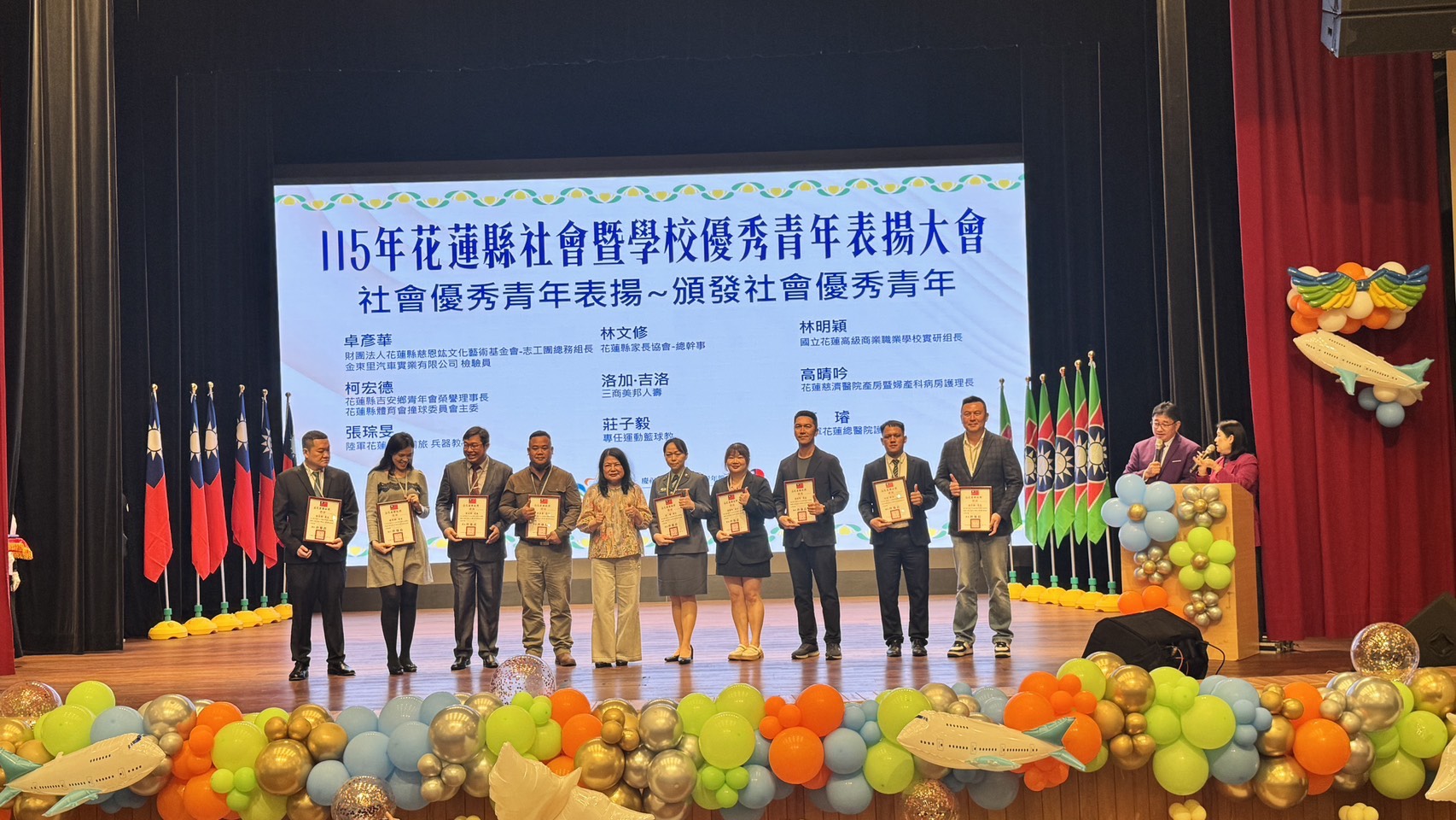 由花蓮縣政府、吉安鄉公所、立法委員傅崐萁服務處、青年節籌備委員會、花蓮第二信用合作社、花蓮縣救國團之友聯誼會及救國團總團部共同指導,花蓮縣救國團及幼獅青年服務協會共同主辦的「115年花蓮縣社會暨學校優秀青年表揚大會」,於28日在花蓮縣吉安鄉客家文化館隆重舉行。今年以「夢想成形 青春前行」為主題,表彰來自社會與學校的優秀青年,肯定他們在品德、學業、創新、服務等領域的卓越表現,為社會注入青春正能量。